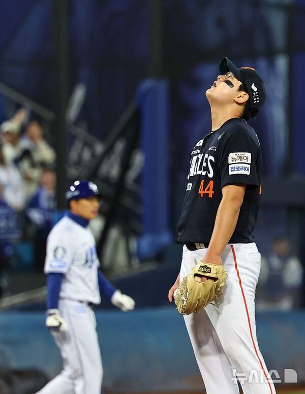 김서현은 올해 정규시즌 69경기에서 33세이브를 기록하며 리그 단독 2위를 차지한 차세대 마무리였다. 하지만 후반기 들어 평균자책점이 5.68로 급등하며 흔들렸다. 정규시즌 마지막 경기였던 SSG전에서는 5-2 리드를 지키지 못하고 연속 홈런을 맞으며 끝내기 패배를 허용, 리그 1위 자리를 빼앗긴 뼈아픈 기억이 있다. 불안감은 포스트시즌까지 이어졌다. 지난 18일 삼성 1차전에서 ⅓이닝 2실점으로 무너졌던 김서현은 4차전에서도 같은 악몽을 반복했다.