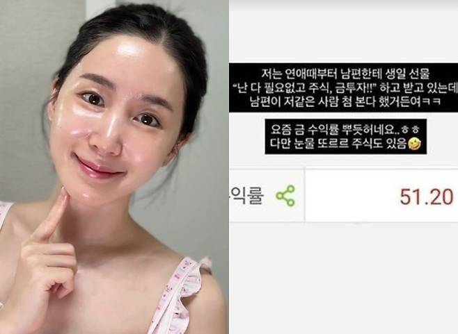 그는 최근 자신의 계정에 "연애 때부터 남편한테 생일 선물 '다 필요 없고 주식, 금 투자' 하고 받고 있는데 남편이 저같은 사람 처음 본다고 했다"며 남다른 재테크 열정을 드러냈다.