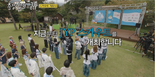 JYP 수장 박진영 대원과 막내 킥플립 케이주 대원이 나란히 무대에 올라 JYP의 사훈 진실, 성실, 겸손이 담긴 스카우트 선서문을 낭독했고, 케이주의 힘찬 구호와 당찬 에너지가 분위기를 한껏 끌어올렸다.