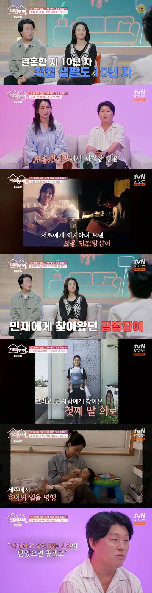 23일 방송된 tvN STORY '각집부부'에서는 배우 김민재와 최유라가 10년 차 각집 살이를 공개했다.