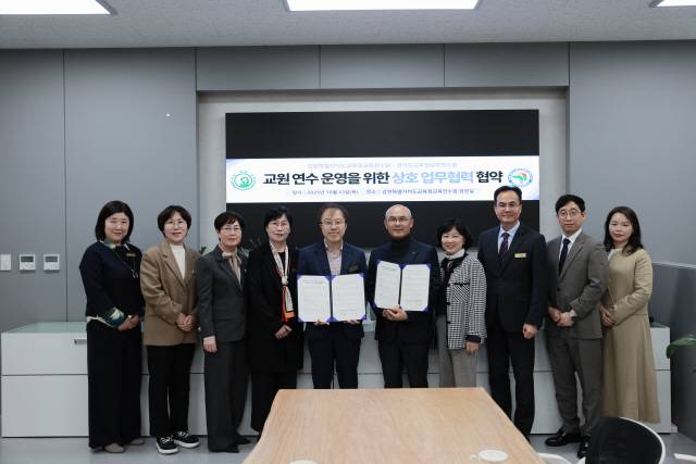 강원도교육청교육연수원(원장 민섭)은 23일 강릉 본원 원장실에서 경기도교육청남부연수원과 ‘교원 역량 강화 지원을 위한 상호 업무 협력체제 구축 협약’을 체결했다.