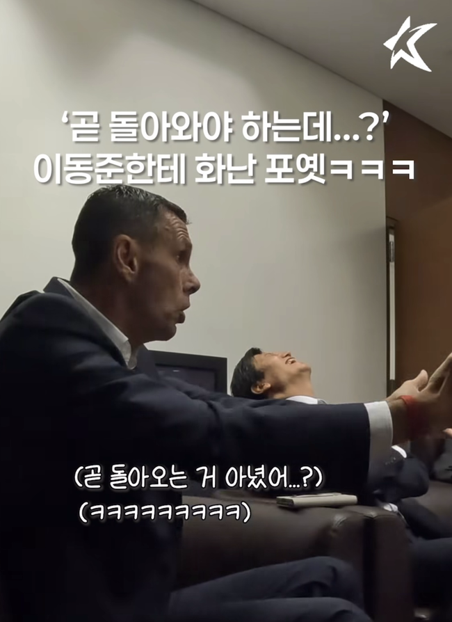 정정용 감독은 포옛 감독에게 “(이)동준이하고 (맹)성웅이 많이 키워놨다”며 너스레를 떨었다. 이에 포옛 감독은 갑자기 “근데 동준이가 우리랑 경기 하는데 여기저기 열심히 뛰어다니더라. 좀 있으면 돌아와야 하는데 왜 이렇게 열심히 하냐”며 장난식으로 화를 냈다.