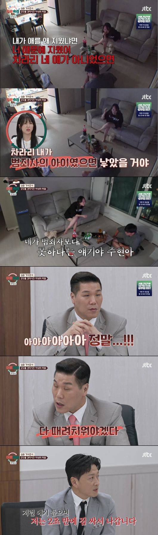 갈등의 심각성은 아내 측 영상에서 더욱 두드러졌다. 아내는 남편이 아이를 향해 도를 넘는 막말을 서슴지 않는다고 폭로했다.