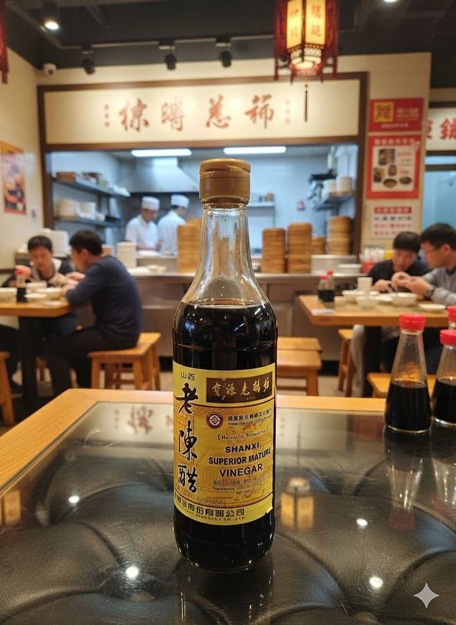 | ▲ 노천추는 만두를 찍어 먹기에 딱 좋은 식초다. Gemini 로 배경을 합성했다. |