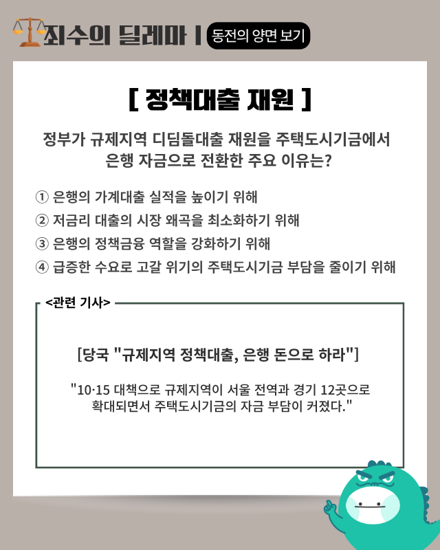 ▶기사 바로가기: 당국 “규제지역 정책대출, 은행 돈으로 하라”