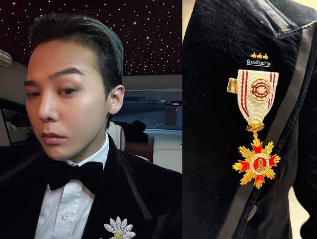 지드래곤의 부계정에는 훈장 실물의 디테일이 담긴 사진이 공개됐다.