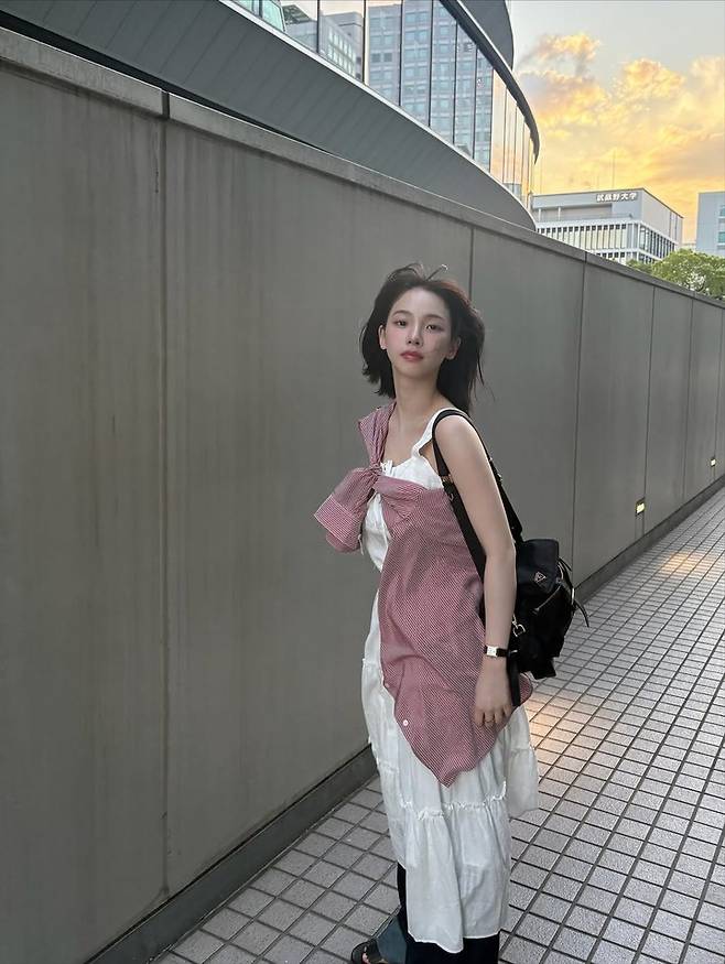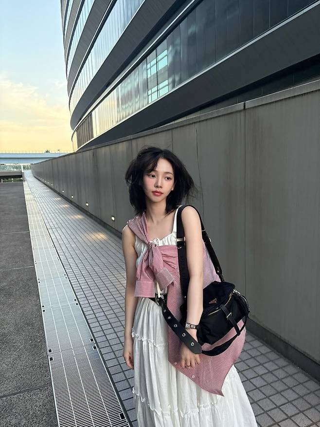 자연스러운 단발 헤어와 투명한 피부톤이 어우러지며, 순수한 청순미가 돋보였다. 이어진 사진에서는 스트라이프 셔츠를 레이어드하고 심플한 시계와 블랙 백으로 스타일리시한 포인트를 더했다.