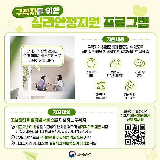 · 구직자가 취업준비에 집중할 수 있도록 심리적 안정을 지원하고 의욕 향상에 도움을 줌