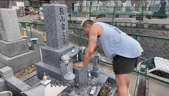 추성훈은 "오사카에 오면 아침에 일어나서 여기서 인사한다"며 애틋한 마음을 전했다.