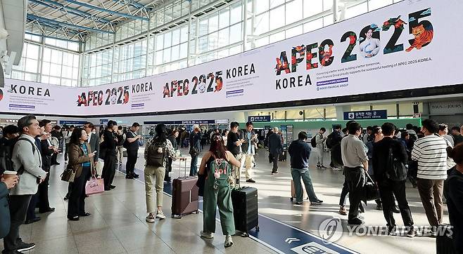 (서울=연합뉴스) 김인철 기자 = 2025 아시아태평양경제협력체(APEC) 정상회의 개막을 일주일 앞둔 24일 서울역 대합실 전광판에 APEC 홍보영상이 표시되고 있다. 2025.10.24
