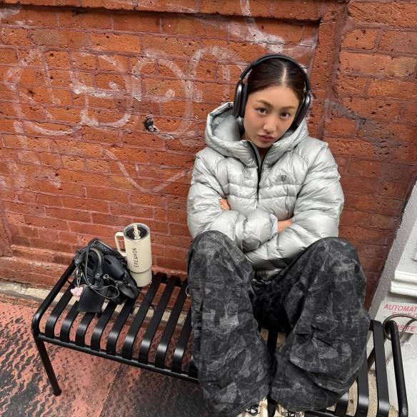 지효는 그레이 컬러의 경량 패딩으로 뉴욕 스트릿 감성을 완벽히 소화했어요. 볼륨감 있는 세미 오버핏 패딩이 얼굴을 더 작아 보이게 하고, 전체적으로 여유로운 무드를 만들어주죠. 패딩과 톤온톤으로 맞춘 다크 그레이 팬츠에는 카모플라주 패턴이 더해져 쿨 지수가 한층 더 업 됐죠. 액세서리도 눈길이 가는데요. 블랙 미니 백과 헤드폰으로 시크한 스타일링이 한층 더 강조됐죠. 도시적이면서도 힙한 지효의 경량 패딩 데일리룩을 완성!