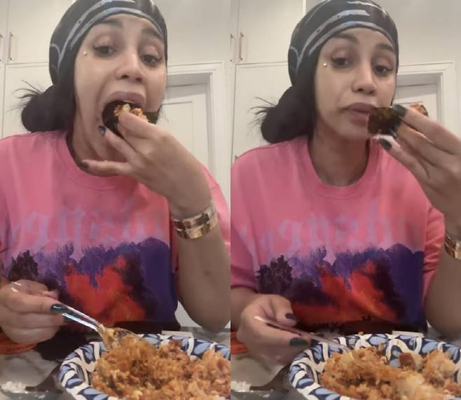 24일 업계에 따르면 카디비는 최근 개인 계정 라이브 방송에서 "H마트(미국 내 최대 한인 마트)에서 한국의 고추참치를 구매했다"며 밥에 고추참치와 마요네즈를 비벼 김에 싸 먹는 모습을 공개했다.