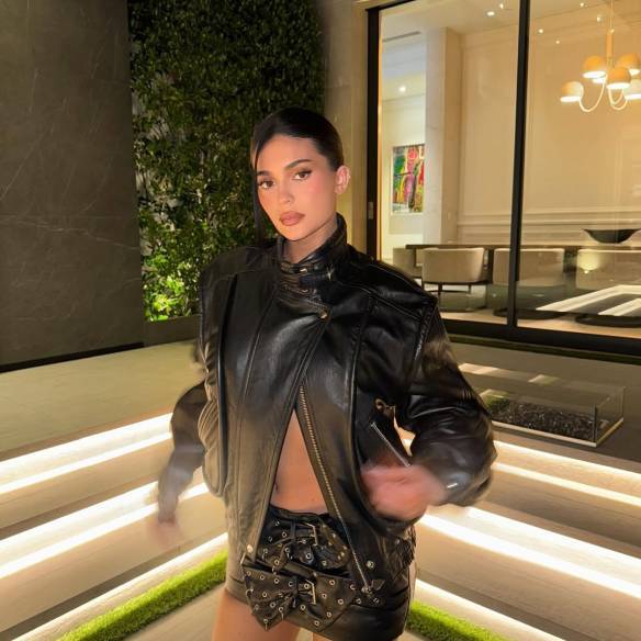한동안 깔끔하게 넘긴 슬릭 헤어와 무채색 스타일링을 즐기던 카일리 제너의 변화된 룩이 화제가 되었습니다. 슬릭 헤어와 마이크로 미니 스커트, 레더 재킷의 조합은 볼드한 액세서리 없이도 분위기 있는 드레싱이 가능하죠.