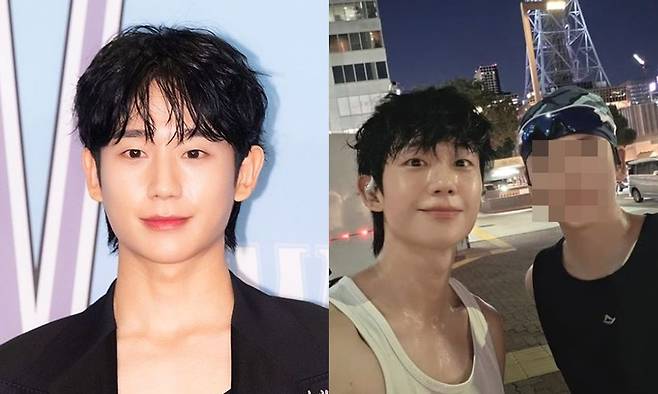 사진 속 정해인은 흰색 민소매 차림으로 러닝 후 땀에 젖은 모습이다. 얼굴부터 머리, 쇄골까지 땀방울이 맺힌 그는 늦은 밤임에도 뽀얀 피부와 부드러운 미소로 눈길을 끈다. 동생 역시 검은색 나시를 입고 스포티한 매력을 더했다. 두 사람의 또렷한 이목구비와 붕어빵처럼 닮은 외모가 보는 이들의 시선을 사로잡는다.