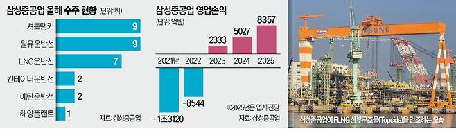 실적도 좋아지고 있다. 삼성중공업은 3분기 매출 2조6348억원, 영업이익 2381억원을 기록했다. 작년 동기 대비 매출은 13%, 영업이익은 99% 급증했다. 싼값에 수주한 컨테이너선 비중이 줄어들고 마진이 높은 해양플랜트 수주가 늘어난 영향이다. 삼성중공업 관계자는 “인도 스완조선소, 미국 비거마린그룹 등과 협력을 확대해 유연한 글로벌 생산 네트워크를 구축하고 있다”며 “양질의 수주를 통해 수익성을 지속적으로 높이겠다”고 말했다.