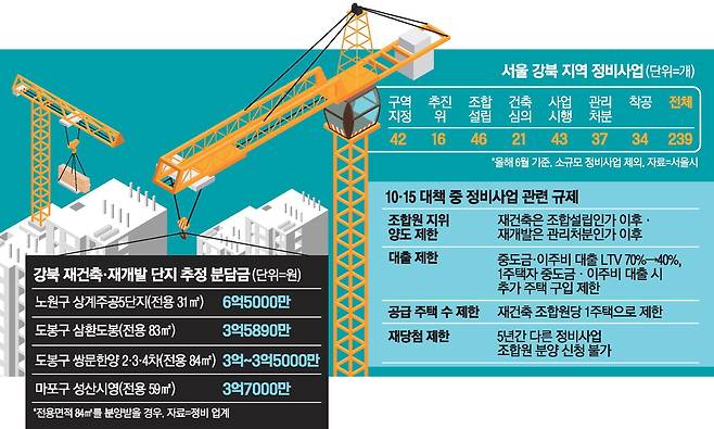 정부의 초강력 부동산 규제인 10·15 대책으로 강북 주요 재건축·재개발 단지들이 궁지에 몰렸다. 조합설립인가 이후 매도는 금지되고, 유지하자니 대출 규제로 돈줄이 막혀 자금 확보가 어려운 상황이다.