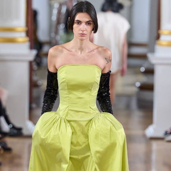필라테스부터 위고비까지, 아름다운 몸매를 향한 탐미가 끊이지 않는 시대에 허리가 주인공으로 거듭나는 일은 어찌 보면 당연한 흐름일지도 모릅니다. 한층 더 또렷해진 허리선은 동시대를 상징하는 새로운 미의 기준으로 올라섰죠. 런웨이에서도 이러한 흐름은 분명했습니다. 뉴욕의 제인 웨이드 는 풍성한 스커트에 브라톱을 매치해 대비감을 강조했고, 런던의 시몬 로샤 는 쇼 노트에서 간단하게 "힙"이라고 표현하기도 한 과장된 모래시계 형태 드레스를 선보였죠.