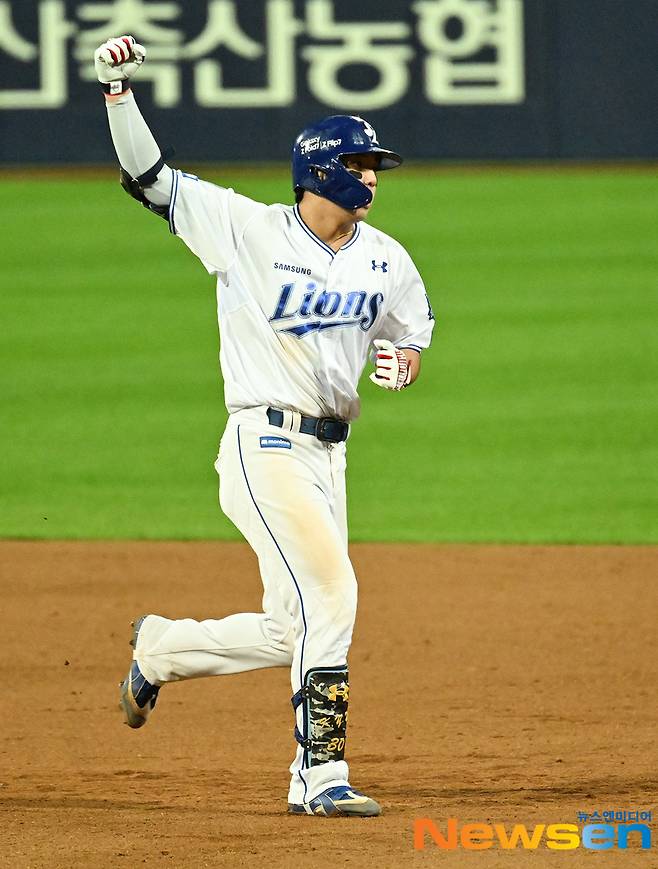 박진만 감독은 포스트시즌을 치르며 "지난해 한국시리즈까지 진출한 경험으로 젊은 선수들이 성장했다"고 이야기했다. 이재현, 김영웅 등 '젊은 사자'들이 포효한 삼성은 아름다운 가을 질주를 펼쳤다.(사진=김영웅/뉴스엔DB)