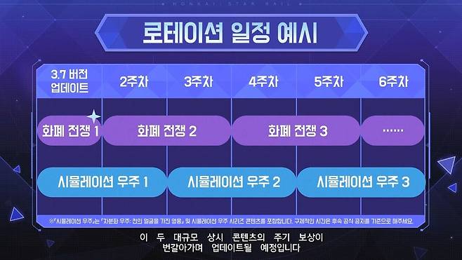 사오지는 "3.7 버전에서 스토리 외 콘텐츠 요소로도 어필할 것이 있다"고 전했다. Dr. 오렌지는 "스타레일이 출시된 이후로 플레이어는 시뮬레이션 우주, 차분화 우주 등 다양한 콘텐츠의 업데이트로 여러 경험을 만끽했다. 3.7 버전에서는 '화폐 전쟁 제로섬 게임'이라는 새로운 상시 콘텐츠를 준비했다. 해당 콘텐츠는 4인 파티가 아닌 10명의 캐릭터와 함께 진행할 수 있다. 스타레일 최초로 규칙을 깬 콘텐츠다"고 덧붙였다.