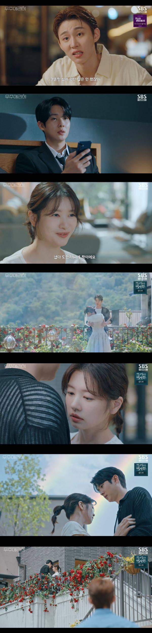 기분이 좋아진 두 사람은 쌍무지개가 뜬 사실을 알고 마당으로 나갔다. 서로 장난치던 중, 유메리는 호스에 발이 걸려 김우주(최우식)의 품으로 넘어지고 말았다. 두 사람 사이 웃음기가 사라지고 묘한 기류가 흐르면서 얼굴이 가까워지던 그 순간, 전 남편인 김우주(서범준)가 두 사람을 발견했다.