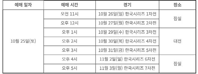 KBO는 "한화 이글스와 LG 트윈스의 2025 신한 SOL뱅크 KBO 한국시리즈 입장권 예매를 25일 오전 11시부터 시작한다"고 발표했다.
