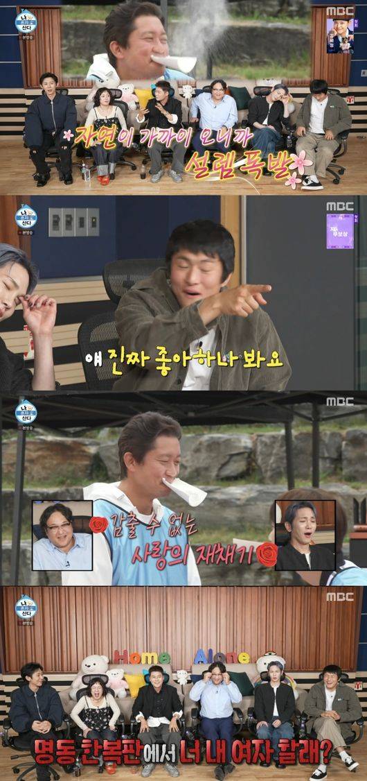 그때 옥자연에게 밀가루를 받은 김대호는 홀로 웃음을 참지 못했고, 기안84는 "얘 진짜 좋아하나봐"라고 놀랐다.