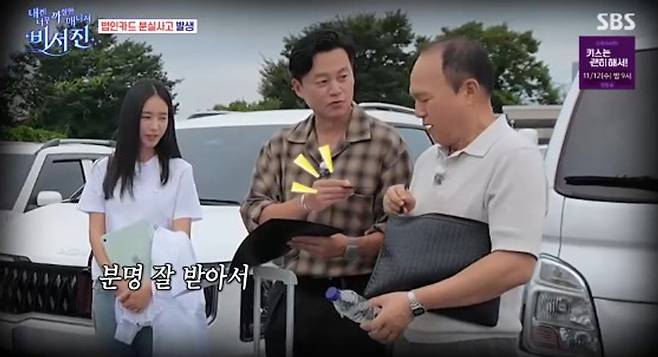 제주 출장 수발에 나선 두 매니저. 공항에서 비행기 탑승 30분 전에 이서진은 법인카드가 없어진 사실을 발견했다. 이서진은 “주머니에 넣었는데 없어졌다”라고 설명했다. 돌발 상황에 안은진과 김광규 역시 이서진의 동선을 따라가며 카드 찾기에 나섰다. 다행히 안은진이 바닥에 떨어져있던 카드를 발견했다. 이에 이서진은 애써 당황함을 숨기며 여유로운 표정을 지었고 김광규는 “내가 얼굴 바로 앞에서 봤다. 그렇게 당황한 거 처음 봤다. 얘도 긴장을 하는 구나 느꼈다. 내가 잃어버리면 미친 듯이 욕했을 거다”라고 말했다.