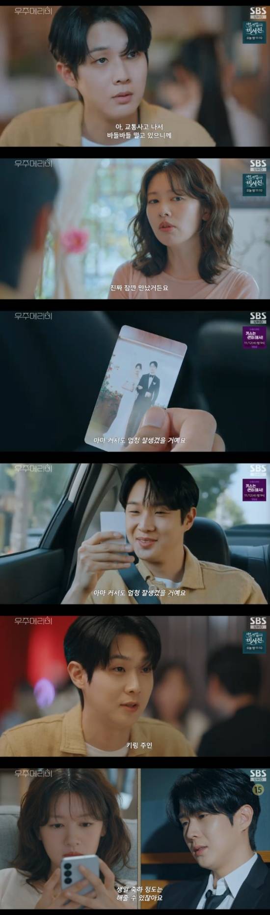 유메리는 "그런데 다시 만나면 바로 알아볼 수 있을 것 같아요. 되게 잘 생겼었거든요. 완전 내 스타일이었는데. 아마 커서도 엄청 잘 생겼을거예요"라면서 미소를 지었다. 김우주 역시 유메리와 찍었던 웨딩사진을 보면서 미소를 감추지 못했다.