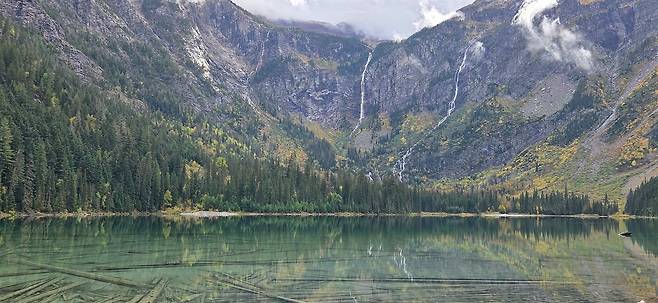 이미 가을로 접어든 9월의 마지막 날, 글레이셔 공원은 비와 함께 차가워진 공기 때문인지 전날과 비교해도 관광객이 부쩍 줄어 있었다. 바다 같으면서도 수정처럼 맑은 호수를 혼자 다 차지한 것 같았다. '하이킹을 안 해도 이런 호강을 다 누리는구나!' 하는 생각까지 들었다. 하늘은 먹구름 속에서 눈 부신 햇살을 뿜어내고 있었다.