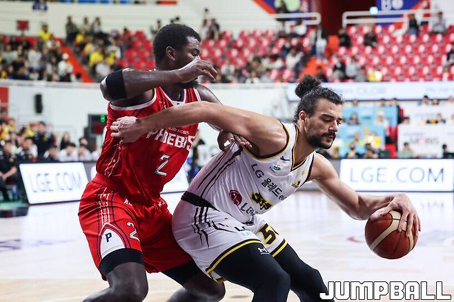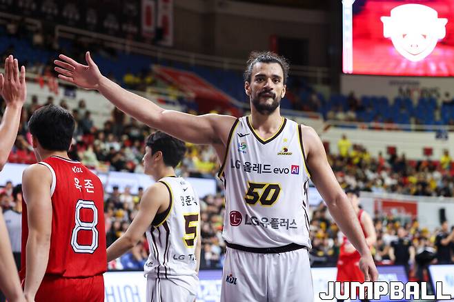 마레이가 골밑을 완벽하게 지배하며 LG의 승리를 이끌었다.