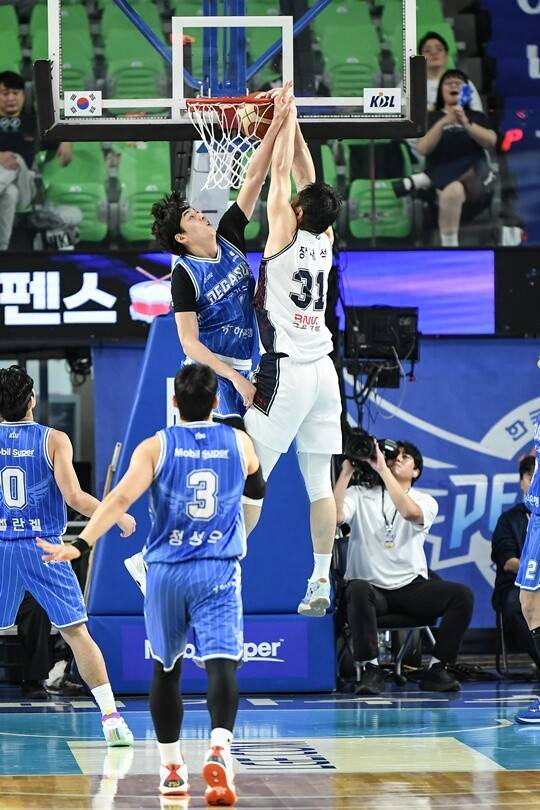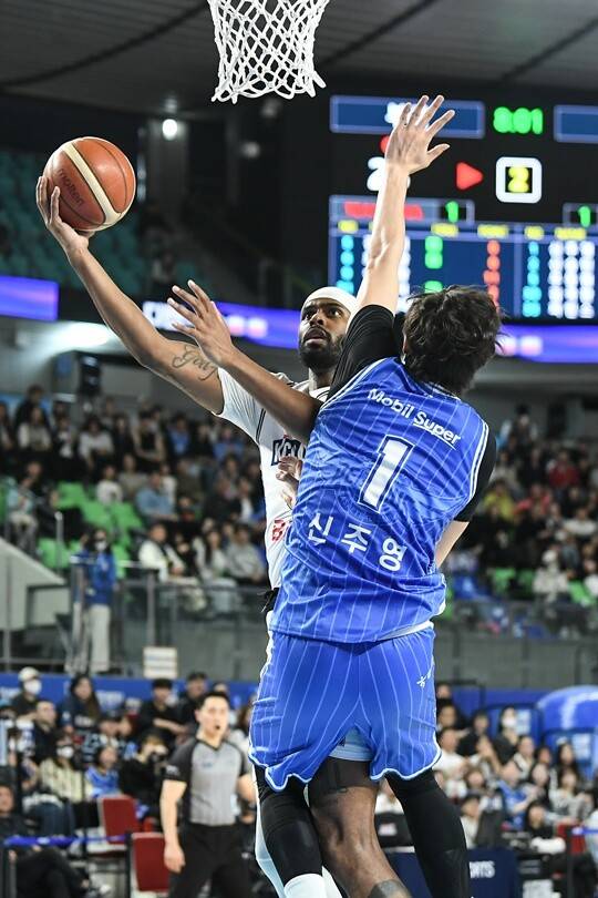 하지만 한국가스공사는 더 이상 흔들리지 않았다. SJ 벨란겔(177cm, G)이 공격 물꼬를 텄고, 라건아(199cm, C)가 골밑 수비를 해냈기 때문이다. 무엇보다 한국가스공사 모든 선수들의 수비 에너지 레벨이 높았다.