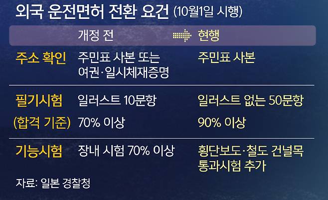 니혼게이자이신문은 면허 전환으로 일본 운전면허를 취득한 외국인들이 일으키는 교통사고가 잇따른 것이 엄격화의 배경이라고 전했다. 지난 5월 사이타마현 미사토시에서 발생한 중국인의 뺑소니 사고, 미에현 가메야마시 고속도로에서 일어난 페루인의 역주행 사건 등 사례가 있다. 사망·중상 피해가 발생한 교통사고에서 외국인 운전자가 차지하는 비율은 2016년 1.0%에서 올해 상반기 2.1%로 크게 늘었다고 신문은 덧붙였다.