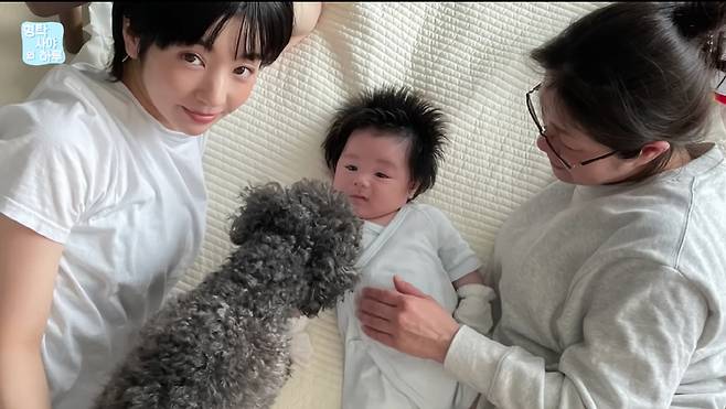 이후 사위 심형탁과 반려견 '김밥'도 차례로 하루를 안으며 사랑이 넘치는 가족의 모습을 보여줬다.