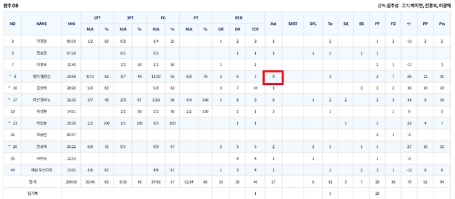 김주성 감독의 말처럼 DB 선수들이 나오는 볼을 잘 처리 해준 덕분에 나올 수 있었던 수치였다.