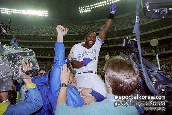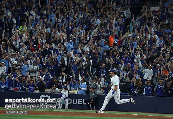 [SPORTALKOREA] 한휘 기자= '역대급 빠던'의 에너지를 넘겨받아 월드 시리즈에 올라온 토론토 블루제이스는 2차전에서 '끝내기 추억'도 물려받는다.