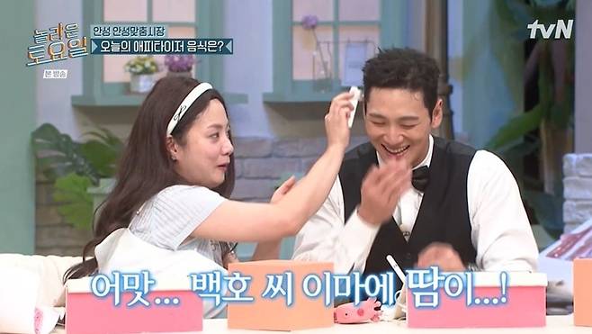 박나래는 머리를 만지작거리며 수줍게 백호를 바라봤고, 백호는 "저 지금 얼굴 처음 봤다. 이쪽을 너무 안 보셔서"라고 말했다. 박나래는 "매번 분장 사고가 있지 않았냐. 원래 제가 '미스터 빈'을 하려고 했는데, 메인 작가님한테 급하게 연락이 왔다. '너 오늘 예쁘게 해야 해. 그분이 나오셔'라고"며 긴박했던 상황을 전했다.