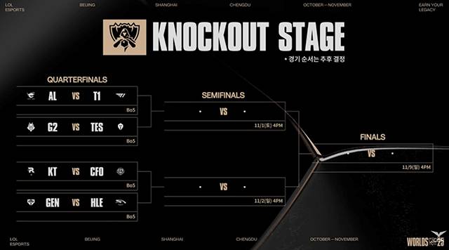 다음주 화요일인 28일 재개되는 이번 월즈는 베이징을 떠나 상하이에서 진행되며, 4일간의 8강 경기 이후 연이어 4강 경기가 진행된다. 8강부터는 5전 3선승제 피어리스 드래프트로 진행되며, 결승은 청두에서 열린다.