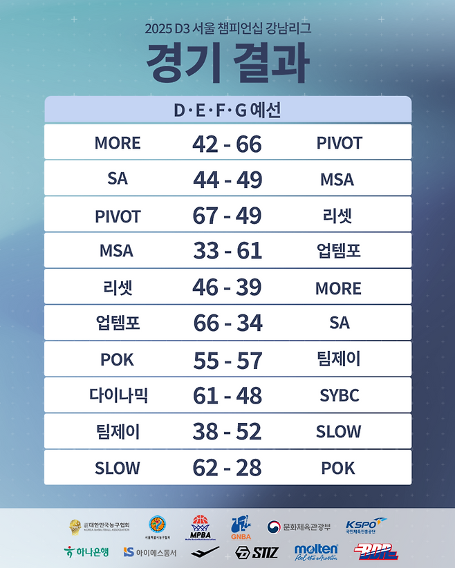 25일 강남스포츠문화센터에서는 2025 D3 서울 챔피언십 농구 디비전리그 예선 10경기가 진행됐다.