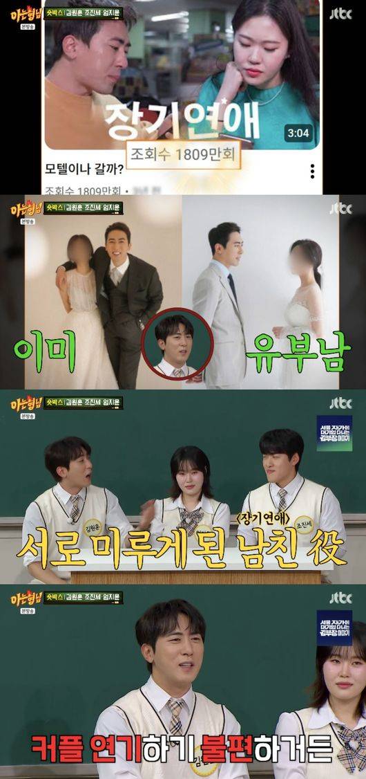 김원훈은 “장기연애라고 하면 선후배끼리 커플연기 하면 불편하다. 그래서 서로 미뤘다. ‘너가 하는 게 더 잘 어울린다’ 그러다가 결국 지윤이가 집에 가고 가위바위보에서 내가 졌다. 그래서 내가 했다”라고 설명했다. 이에 조진세는 “지금 생각하면 너무 잘 어울린다. 나도 지윤이랑 ‘찐남매’ 하고 있다. 잘된 것 같다”라고 전했다.