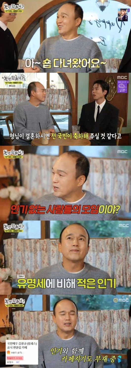 25일 방송된 MBC ‘놀면 뭐하니?-인기 없는 사람들의 모임(인사모)’에서는 마지막 초대 멤버로 김광규가 등장했다. 최근 드라마 ‘폭군의 셰프’에서 엄숙수 역으로 활약했던 그는 민머리를 당당히 드러내며 등장, 유재석과 주우재의 환영을 받았다.