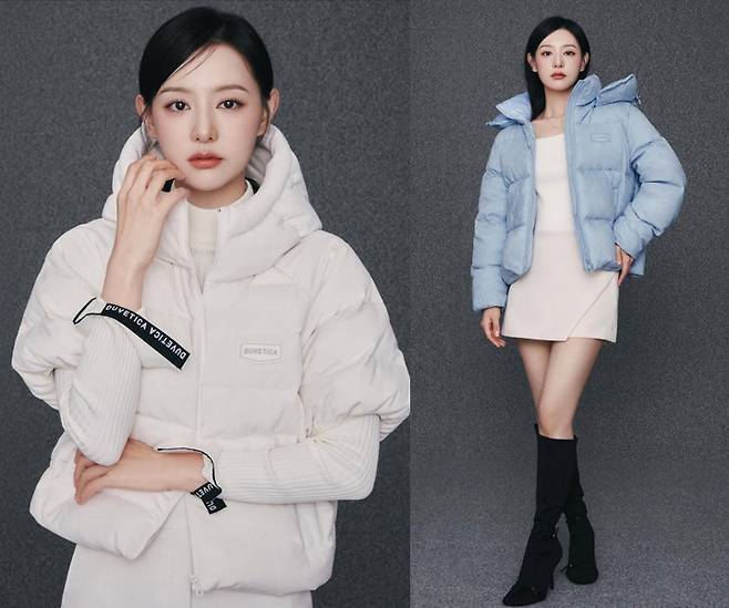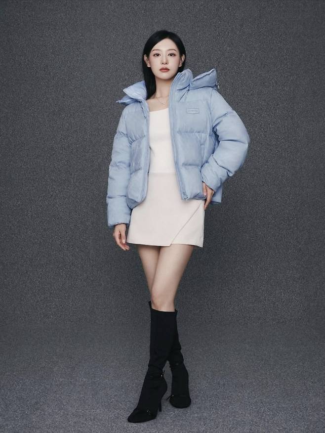 최근 공개된 화보에서 김지원은 시크한 음영 메이크업으로 고급스러운 분위기를 완성했다. 하늘색 패딩 재킷에 아이보리 미니드레스를 매치해 도시적인 겨울룩을 선보였으며, 단정하면서도 도회적인 무드로 절제된 카리스마를 드러냈다.