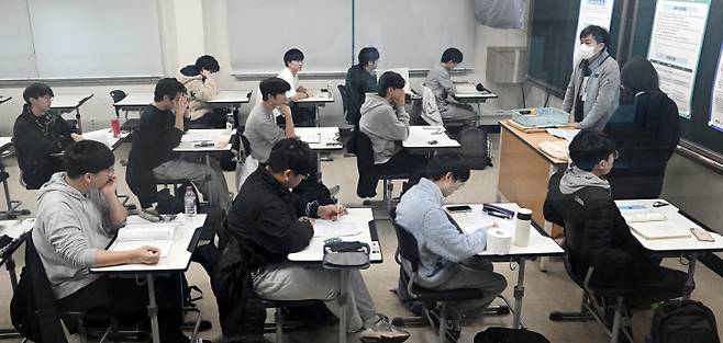 [2025학년도 대학수학능력시험(수능)이 치러진 작년 11월 14일 오전 대전 서구 만년고등학교에 마련된 시험장에서 수험생들이 시험을 준비하고 있다. (사진=연합뉴스)]