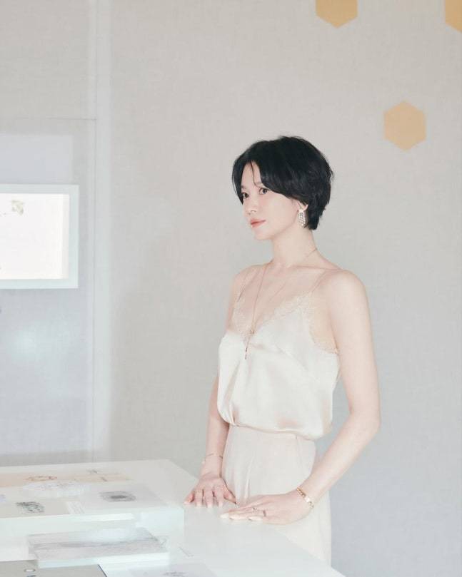 쇄골 드러낸 실크 슬립+단발 고혹미로 시선 사로잡은 송혜교 [SCin스타]