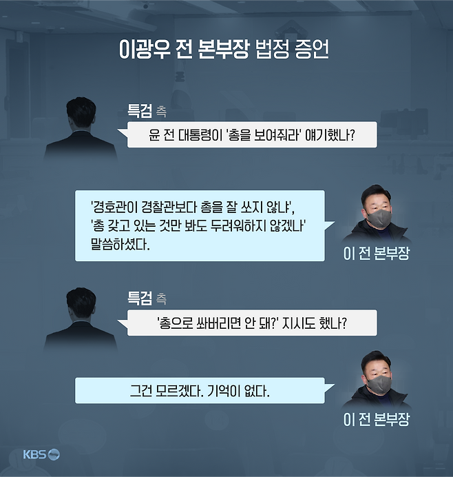 그럼에도 이 전 본부장은 윤 전 대통령이 총을 쏘라고 직접적으로 지시하진 않았다고 말했습니다.