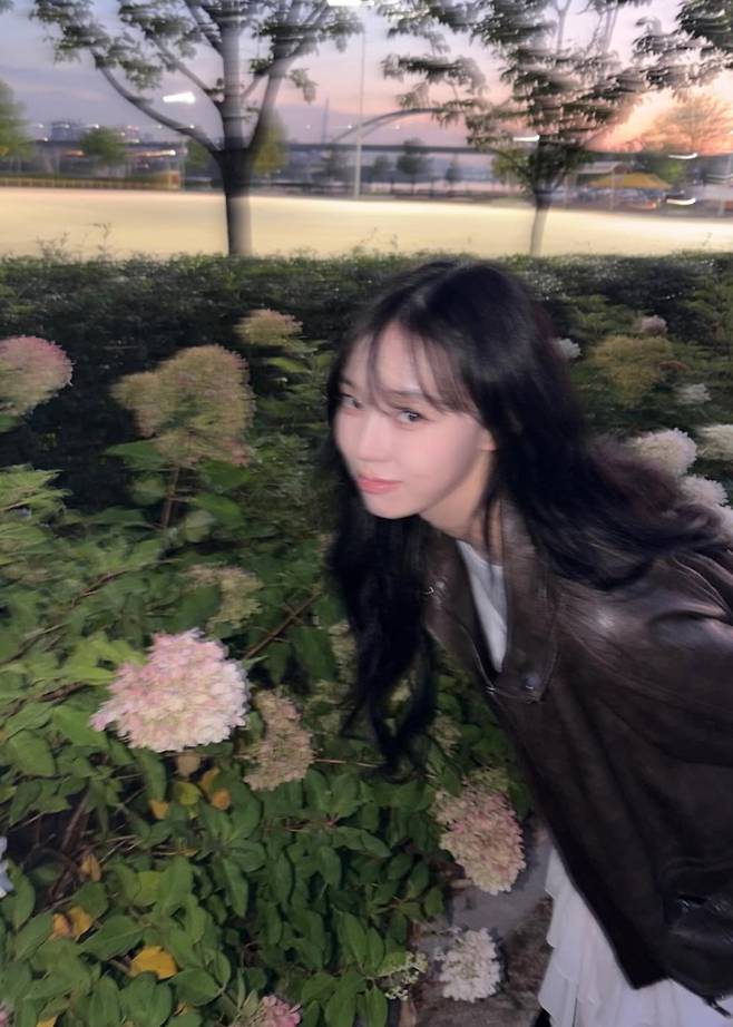 또 다른 사진에서는 플라워 가든을 배경으로 가볍게 미소를 지어 한층 부드러운 분위기를 연출했다. 차가운 인상과 따뜻한 무드가 공존하는 윈터 특유의 매력이 자연스럽게 담겼다는 반응이다.