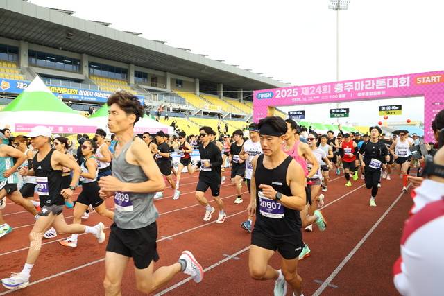 [충청타임즈] 제24회 충주마라톤대회가 지난 25일 충주종합운동장 일원에서 성황리에 개최됐다. 충주시체육회가 주최·주관한 이번 대회는 시민 건강 증진과 지역관광 활성화를 목표로 진행됐다. 대회에는 4300여명이 참가해 하프, 10㎞, 5㎞ 코스에서 힘찬 레이스를 펼쳤다. 대회장에서는 참가자를 위한 먹거리장터 무료지원, 테이핑 봉사, 포토존, 완주메달 각인서비스, DID 기록조회 서비스 등이 운영됐으며, 충주시청, 충주경찰서, 충주소방서, 충주시장애인체육회, 충주시시설관리공단, 충주보건소, 충주북부보훈지청, 건강보험심사평가원, 충주공군19전투비행단, 충주모범운전자회, 해병전우회, 현대자동차충주지점, 현대해상충주지점, 태동이, 가톨릭관동대 스포츠재활의학과 등 관계기관의 적극적인 협조와 지원으로 안전하고 풍성한 대회로 마무리됐다. 진용섭 충주시체육회장은 "제24회 충주마라톤대회가 충주를 널리 알릴 수 있는 마라톤대회로 정착하는 뜻 있는 대회가 됐다"며 "앞으로 더 체계적이고 발전하는 마라톤대회를 만들도록 관계기관과 함께 노력하겠다"고 말했다.