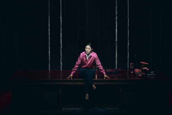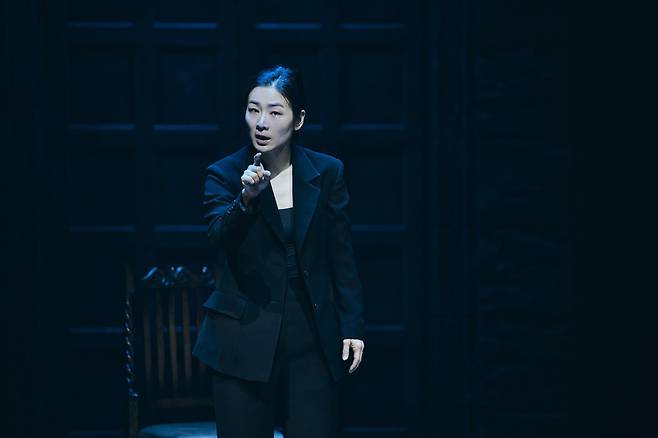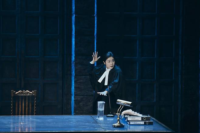 극 초반의 테사는 완벽한 ‘승소 기계’다. 이자람은 말의 속도를 올리고, 대사를 한 구절 한 구절 또렷하게 박아 넣어 재판장을 지배하는 변호사의 리듬을 만들어냈다. 관객은 “이제 증인은 내 거야”라고 자신하는 테사를 자연스럽게 받아들이게 된다.