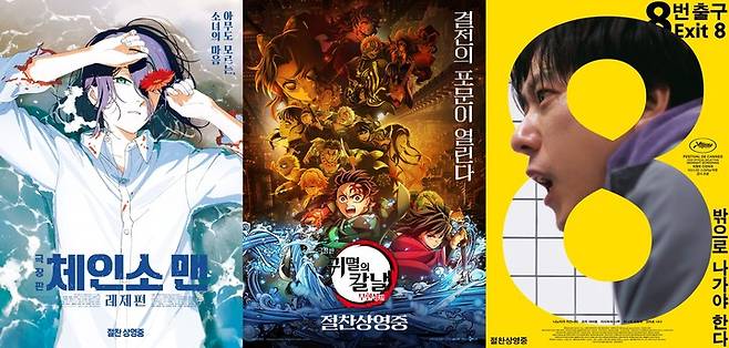 실시간 예매 순위(10월26일 오전 기준) 상위권이 '극장판 체인소 맨: 레제편', '8번 출구', '극장판 귀멸의 칼날: 무한성 편' 등 일본 영화와 애니메이션으로 채워지는 현상이 뚜렷하다.