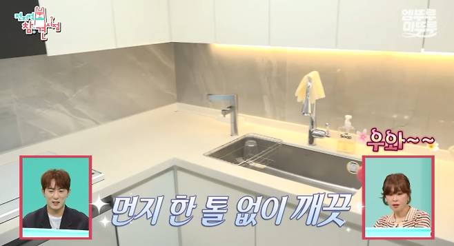 무엇보다 참견인들을 놀라게 한 것은 먼지 한 톨 없이 완벽하게 정돈된 집의 상태였다. 마치 모델하우스를 보는 듯 밖으로 나와 있는 짐 하나 없이 깔끔한 모습에 송은이는 “세상에, 나와 있는 짐이 하나도 없다”며 연신 감탄했다. 냉장고 역시 각종 식재료와 반찬들이 칼각으로 정리되어 있어 깔끔한 성격을 엿볼 수 있었다. 홍현희가 “아내분이 요리를 많이 해주시나 보다”라고 묻자 김원훈은 “많이 해 먹는다”고 답하며 아내에 대한 애정을 드러냈다.