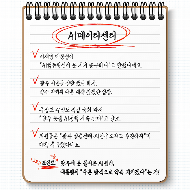 ✅ 포인트: 광주에 못 들어온 AI센터, 대통령이 "다른 방식으로 약속 지키겠다"는 거!
